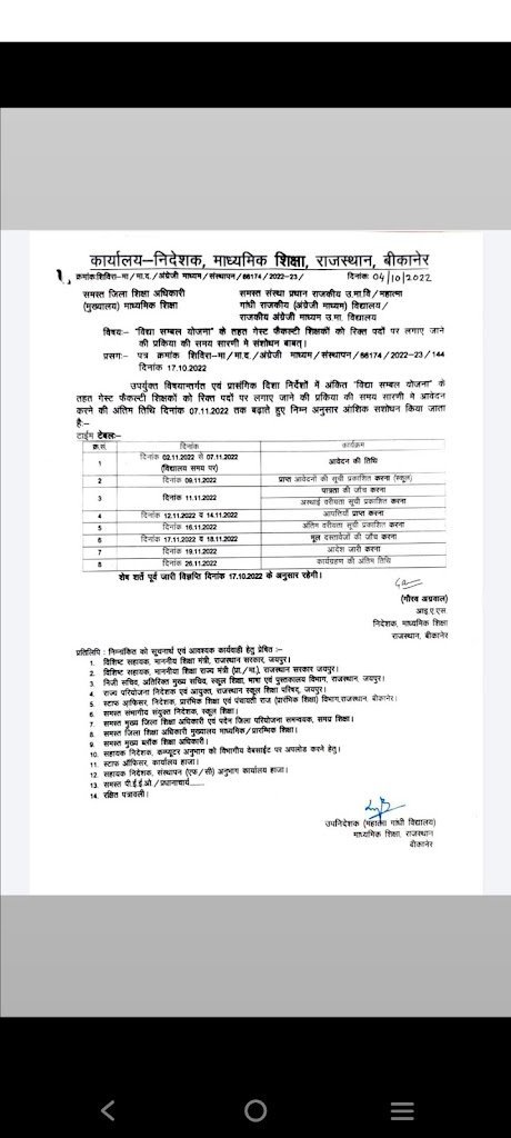 अध्यधीन रखा जायेगा, जो वित्त विभाग के परिपत्र दिनांक 30.03.2021 में वर्णित है। V गेस्ट फैकल्टी के कार्य का नियमित अवलोकन प्राचार्य/पीईईओ द्वारा किया जाएगा। निम्न कार्यकुशलता, दुराचरण, अनियमितता या कार्य से अनुपस्थिति