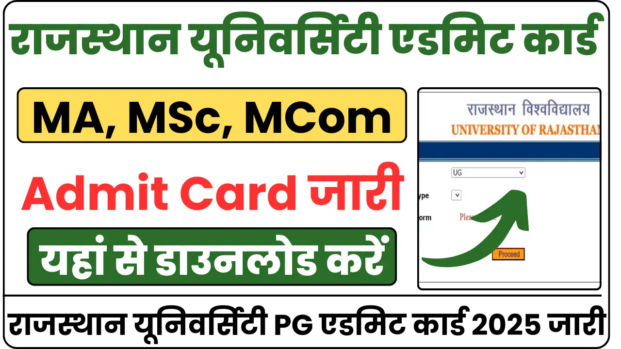 Rajasthan University MA, MSc, MCom Admit Card 2025 राजस्थान यूनिवर्सिटी PG एडमिट कार्ड 2025 जारी, यहां से डाउनलोड करें: राजस्थान