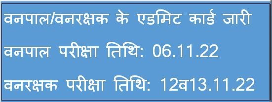 वनपाल एवं वनरक्षक सीधी भर्ती परीक्षा 2020 के प्रवेश पत्र जारी वनपाल की परीक्षा: दिनांक 6 नवंबर 2022वनरक्षक परीक्षा दिनांक: 12