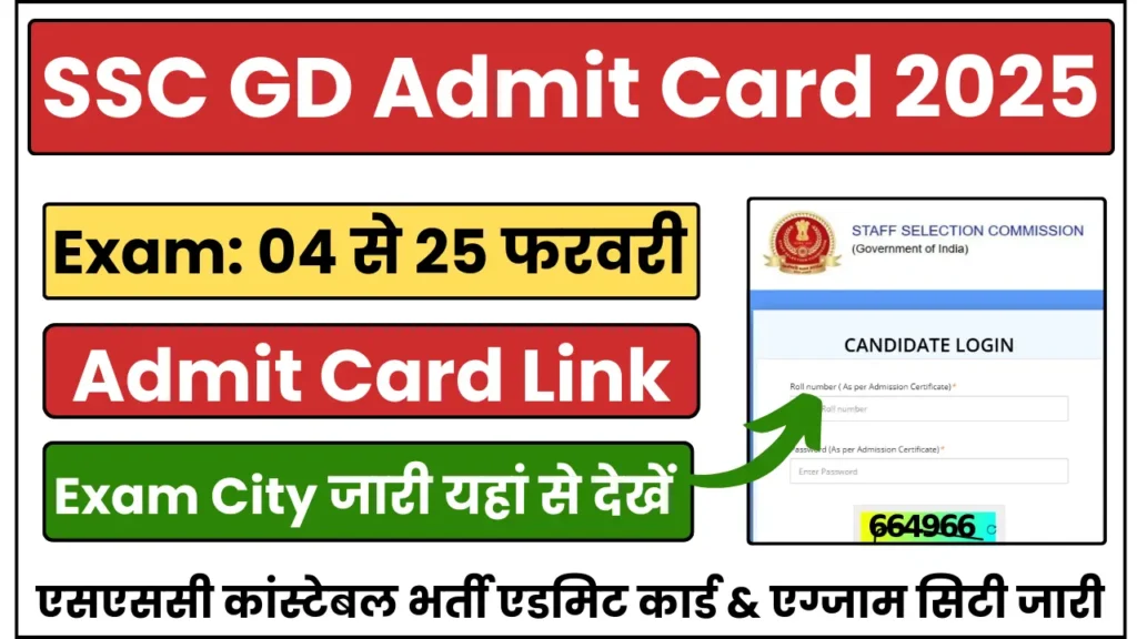 SSC GD Admit Card 2025 एसएससी जीडी Constable एडमिट कार्ड और एग्जाम सिटी जारी, यहां से देखें