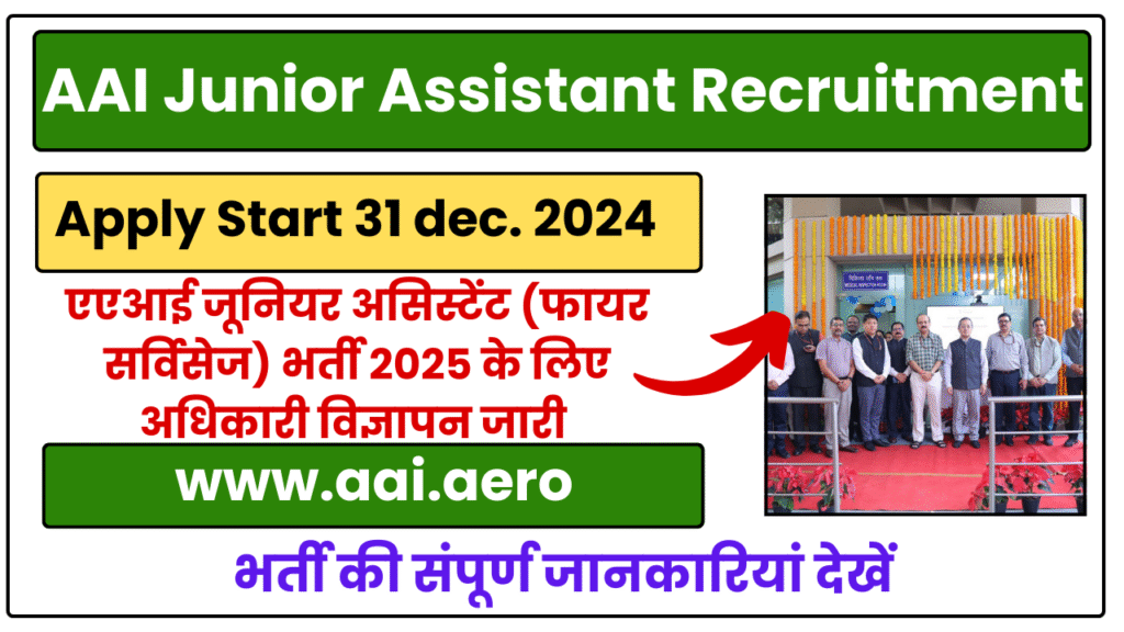 AAI Junior Assistant Recruitment एएआई जूनियर असिस्टेंट (फायर सर्विसेज) भर्ती 2025 के लिए अधिकारी विज्ञापन जारी कर दिया है भारतीय