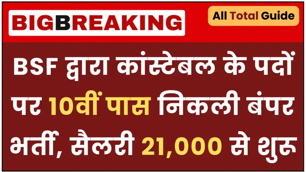 BSF Constable Recruitment 2024 बीएसएफ द्वारा कांस्टेबल के पदों पर 10वीं पास निकली बंपर भर्ती: बीएसएफ विभाग में कांस्टेबल के