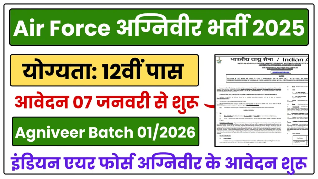 Indian Air Force Agniveer Recruitment 2025 इंडियन एयर फोर्स अग्निवीर के लिए 2500 पदों पर भर्ती निकली, योग्यता 12वीं पास,