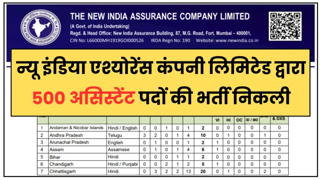 NIACL Assistant Recruitment 2024 नई इंडिया एश्योरेंस कंपनी लिमिटेड द्वारा 500 असिस्टेंट पदों की भर्ती निकली, आवेदन यहां से करें: