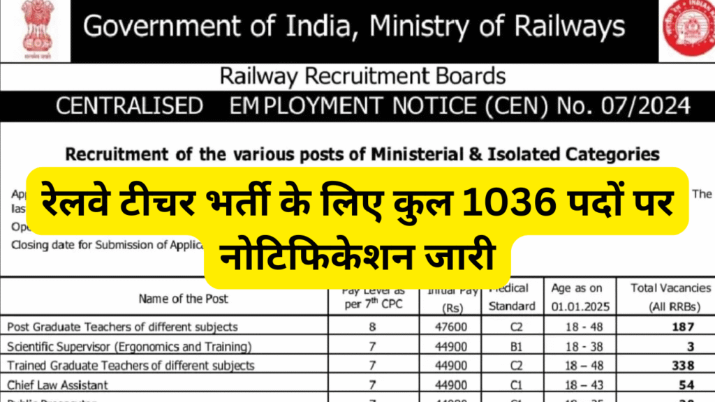 RRB Railway Teacher Vacancy रेलवे टीचर भर्ती 2025 के लिए अधिकारी विज्ञापन जारी कर दिया है जिसके लिए ऑनलाइन आवेदन
