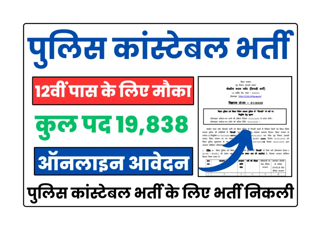 Bihar Police Constable Recruitment 2025 बिहार पुलिस कांस्टेबल भर्ती 2025 के लिए 19838 पदों पर भर्ती निकली, आवेदन यहां से करें