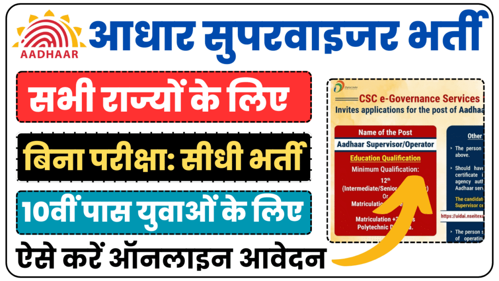 Aadhar Supervisor Recruitment 2025 आधार सुपरवाइजर की नई भर्ती निकली, योग्यता 10वीं/12वीं पास, ऐसे करे ऑनलाइन आवेदन: आधार सुपरवाइजर भर्ती