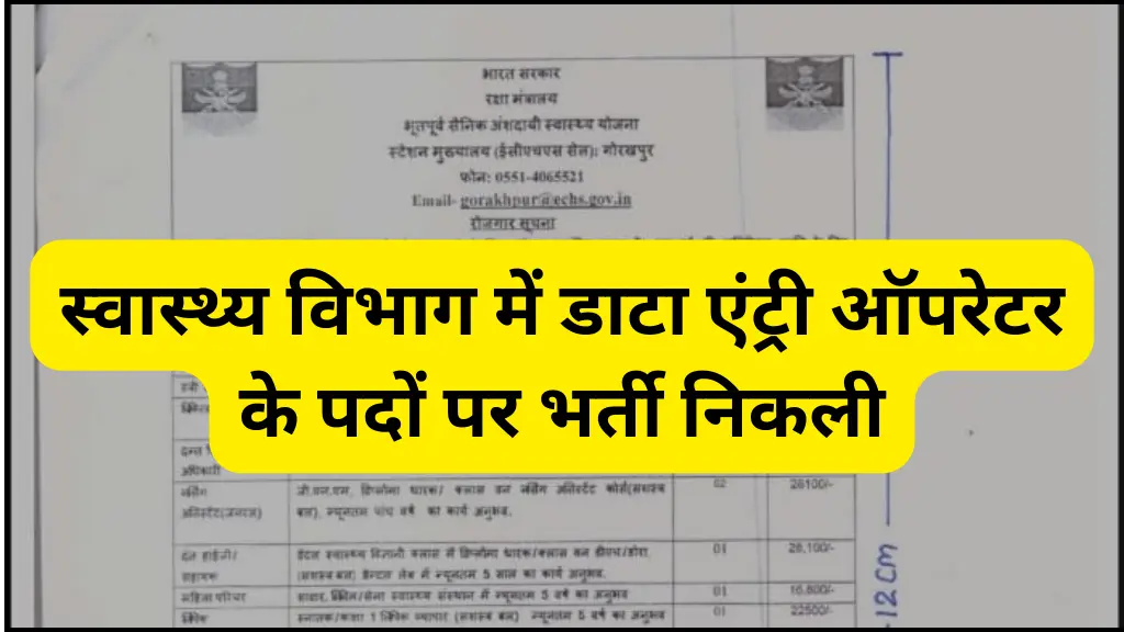 Health Data Entry Operator Recruitment 2025 स्वास्थ्य विभाग में डाटा एंट्री ऑपरेटर के पदों पर भर्ती के लिए नोटिफिकेशन जारी: