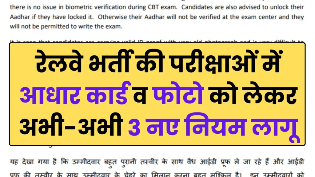 Railway Exam 3 New Rules रेलवे भर्ती की परीक्षाओं में आधार कार्ड व फोटो को लेकर अभी-अभी तीन नए नियम लागू, यहां से देखें