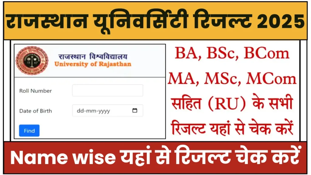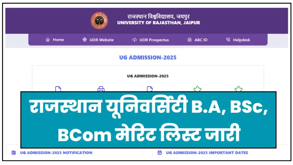Rajasthan University Merit List 2025 राजस्थान यूनिवर्सिटी B.A, BSc, BCom मेरिट लिस्ट जारी, यहां से देख अपना नाम