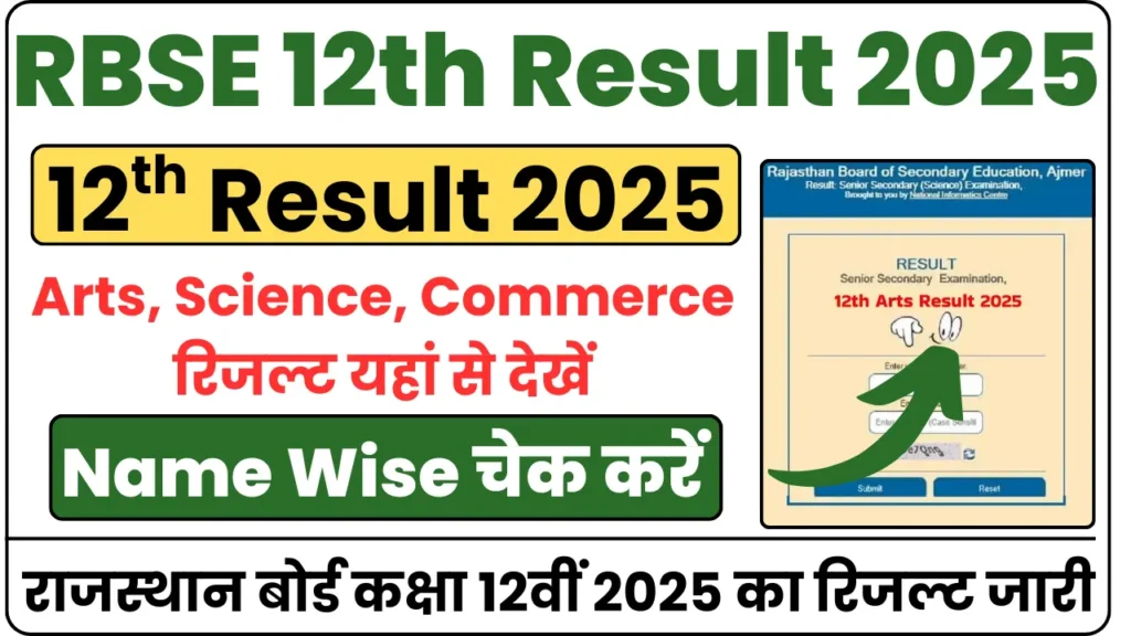 Rajasthan Board 12th Art’s Result 2025 राजस्थान बोर्ड कक्षा 12वीं आर्ट्स का रिजल्ट जारी, Name Wise यहां से देखें: राजस्थान