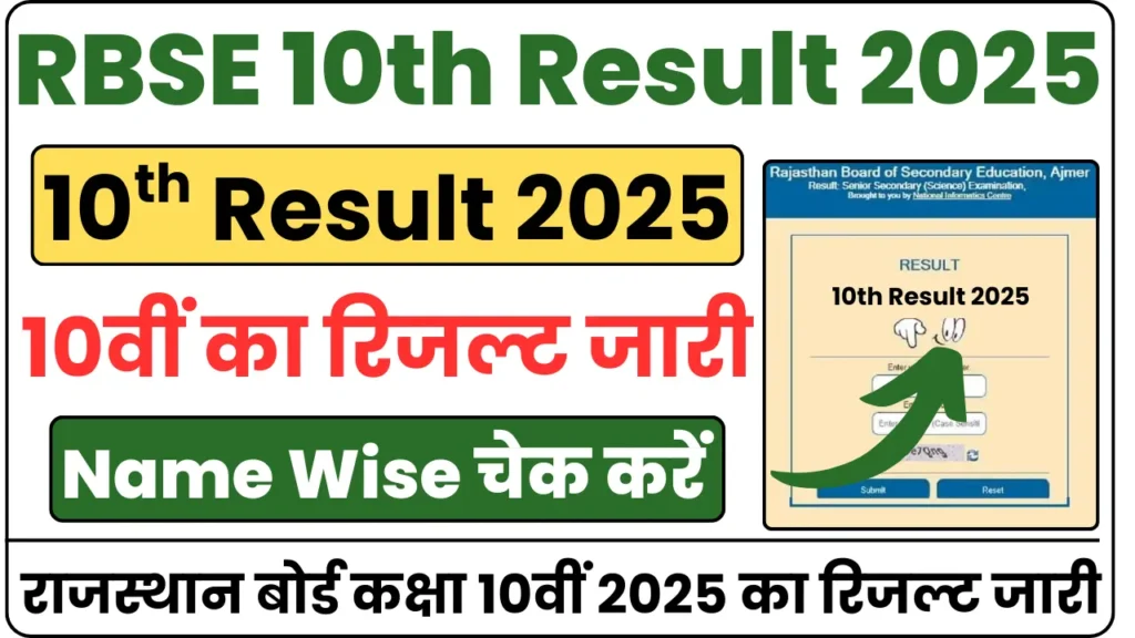 Rajasthan Board 10th Result 2025 राजस्थान बोर्ड कक्षा 10वीं का रिजल्ट जारी, Name Wise यहां से देखें: राजस्थान माध्यमिक शिक्षा