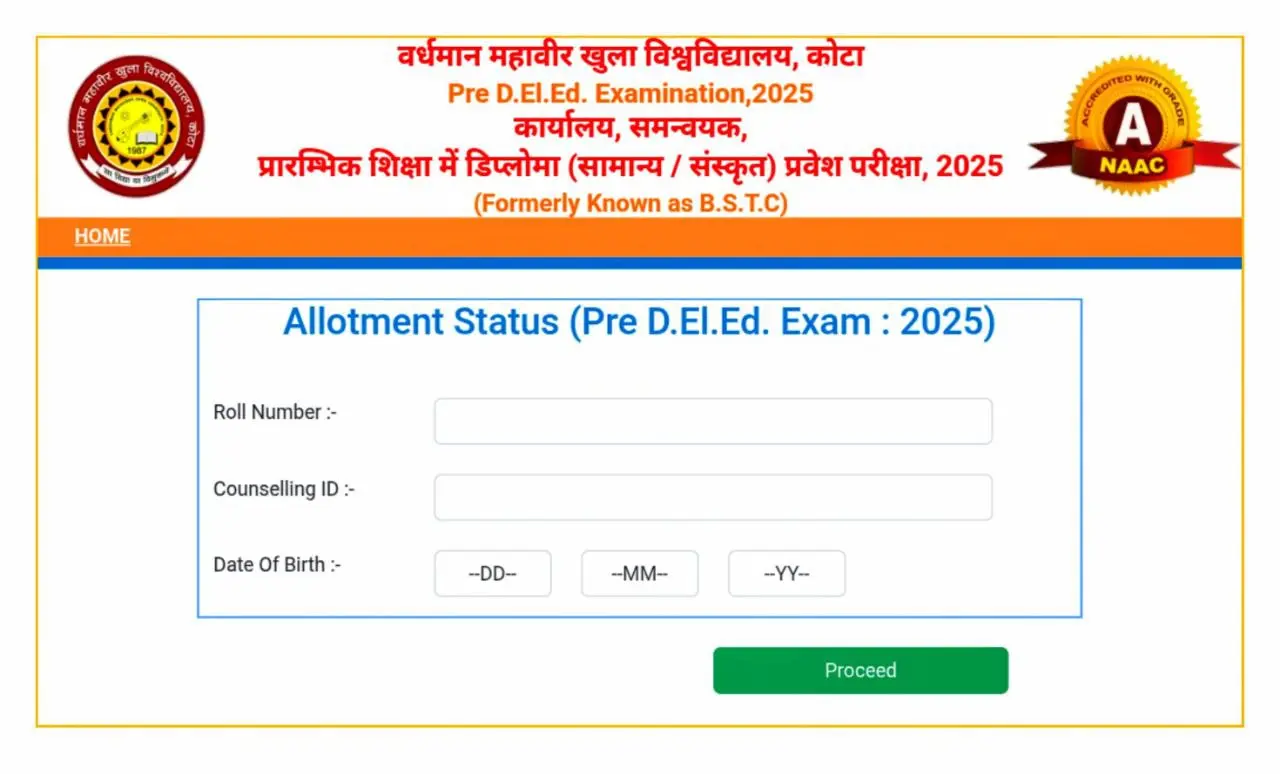 वर्धमान महावीर ओपन यूनिवर्सिटी की ओर से बीएसटीसी 2025 कॉलेज एलॉटमेंट रिजल्ट 26 जून 2025 को जारी किया जाएगा चयनित अभ्यर्थियों द्वारा 13,555/- शुल्क का ऑनलाइन भुगतान कर 27 जून 2025 से 03 जुलाई 2025 तक आवंटित शिक्षण संस्था में रिपोर्टिंग के लिए उपस्थित होना है- Counselling Form Fee = 3000/-