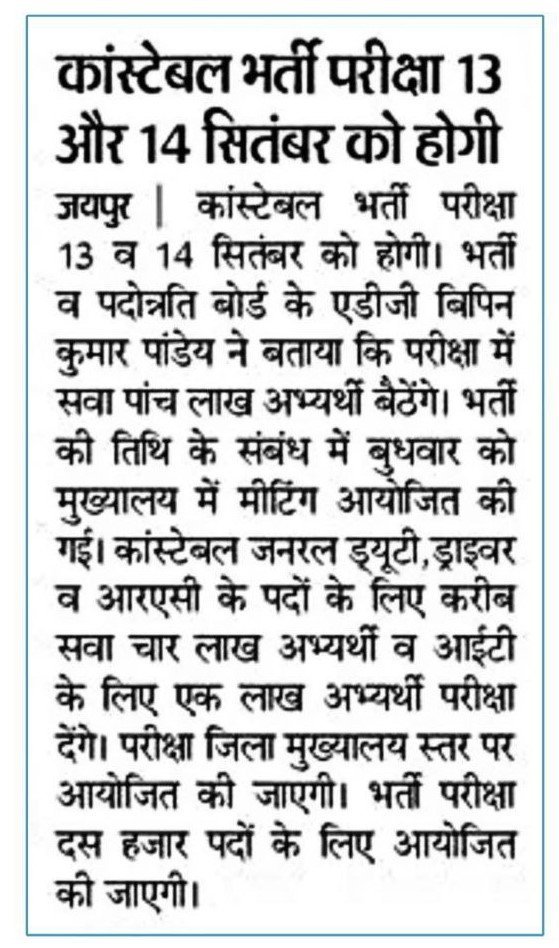 राजस्थान पुलिस भर्ती से संबंधित सूचना सबसे पहले  Click Here